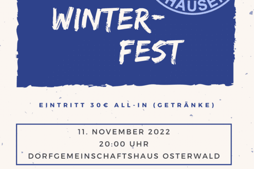 Am 11.11.2022 findet das diesjährige Winterfest statt. Alle Abteilungen sind herzlich eingeladen.