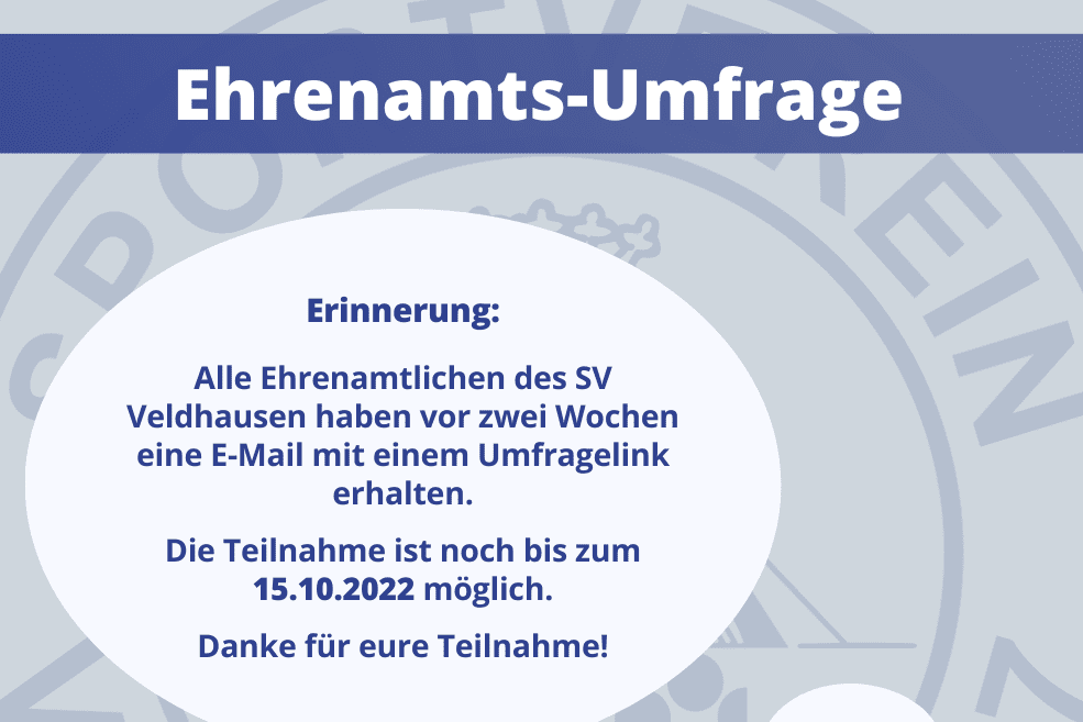 Alle Ehrenamtlichen des SV Veldhausen haben vor ca. zwei Wochen (18.09.2022) eine E-Mail mit einen Umfragelink erhalten.