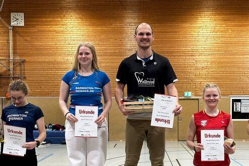 Besonders hervorzuheben sind dabei Lauren und Lotta,die beide jeweils den 1. Platz in ihrer Altersklasse belegten. Lotta gewann dabei das Finale gegen ihre Vereinskameradin Jolien und Lauren konnte sich souverän mit einem 21:18 und 21:12 durchsetzen. Auch die anderen Teilnehmer hatten spannende und knappe Spiele, mit denen sie sehr zufrieden sein können.
