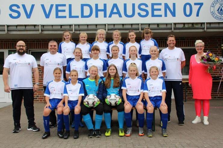Die C2 Mädels der JSG Georgsdorf/Veldhausen/Esche bedanken sich sehr herzlich bei Svenja Müller von Immobilien Müller aus Veldhausen für diesen tollen Trikotsatz.